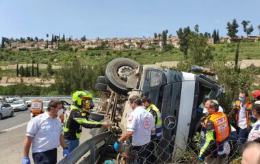 נהג מערבל בטון נפצע אנוש לאחר שהתהפך במחלף גולדה מאיר בירושלים