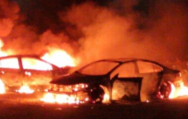 מצוקי דרגות: רעולי פנים יידו אבנים לעבר פלסטינים, ריססו גז מדמיע ושרפו שני רכבים