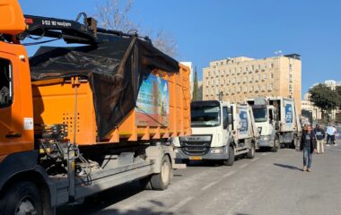 מחאת השלטון המקומי: עשרות משאיות תברואה הגיעו לאוהל מחאה מול משרדי רה"מ בירושלים