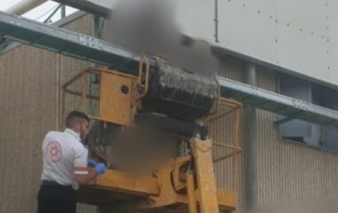 אסון בשרון: 2 פעולים נמחצו ונלכדו על סל מנוף בגובה