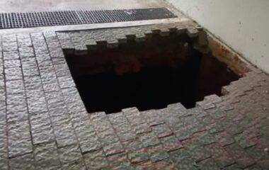בולען נפער בחנייה של בניין מגורים בהוד השרון – חשש לקריסת המבנה