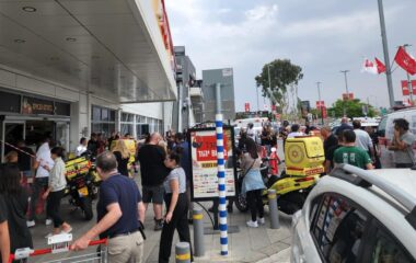 רכב התנגש במרכז מסחרי ביהוד – 5 נפצעו במצב בינוני וקל • תיעוד מהזירה