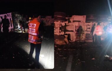 נהג כבן 40 נהרג לאחר שמשאיתו התהפכה סמוך לצומת חתרורים בנגב