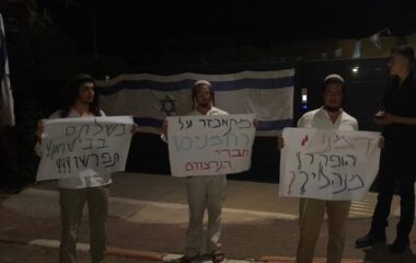 במהלך המצור על הישוב עטרת: פעילי ימין הפגינו מול ביתו של השר אופיר סופר