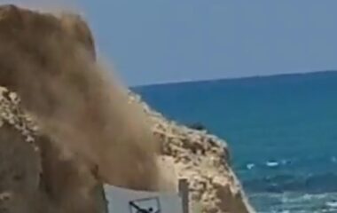 לעיני המתרחצים הנדהמים: מצוק קרס בחוף ים בחדרה • תיעוד