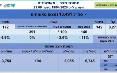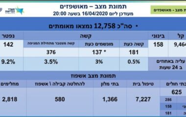 מספר הנפטרים מקורונה עלה ל-173, מספר הנדבקים עומד על 13,654, מתוכם 114 מונשמים