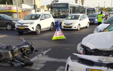 רוכב אופנוע בן 50 נפצע אנוש וצעיר בן 19 קל בתאונה בין רכב לאופנוע בפתח תקווה