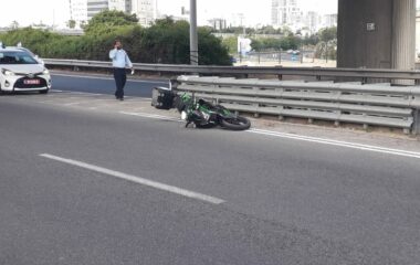 רוכב אופנוע כבן 50 נפצע קשה בתאונה על גשר בר אילן