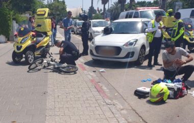 רוכבת אופניים חשמליים בת 17 נפגעה מרכב בתל אביב – מצבה בינוני
