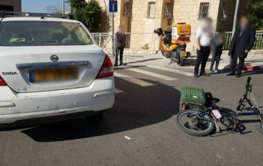 רוכב אופניים חשמליים כבן 20 נפגע מרכב בירושלים – מצבו בינוני