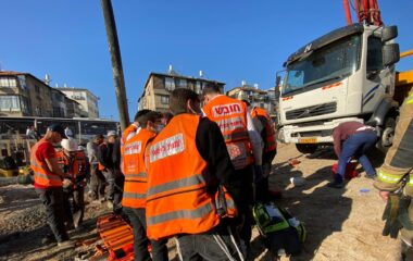 פועל בן 35 נפצע קשה מפגיעת צינור משאית בטון באתר בנייה בבני ברק