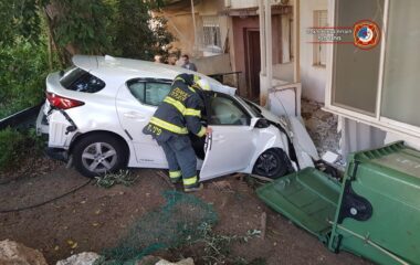 נהגת מחיפה איבדה שליטה על רכבה, פגעה ברכב וסטתה לחצר של בניין סמוך – אין לכודים במקום