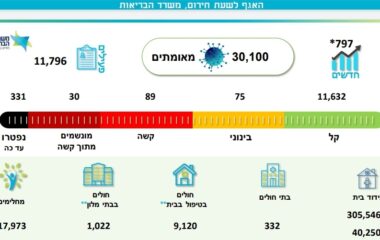 משרד הבריאות: חמישה נפטרו היום – 1,052 חולים חדשים מחצות