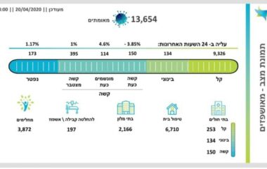 מספר הנפטרים מקורונה עלה ל-173, מספר הנדבקים עומד על 13,654, מתוכם 114 מונשמים