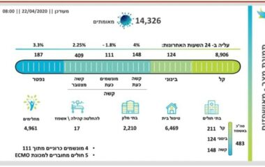 מספר הנפטרים מקורונה עלה ל-187, מספר הנדבקים עלה ל-14,326, בהם 111 מונשמים