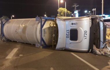 תיעוד: משאית התהפכה בכניסה לדימונה – הנהג נעצר בחשד שהיה תחת השפעת אלכוהול