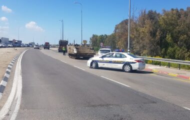 צומת אמונים: גרר שהוביל כלי רכב צבאים השמיט על הכביש נגמש – נתיב אחד נחסם