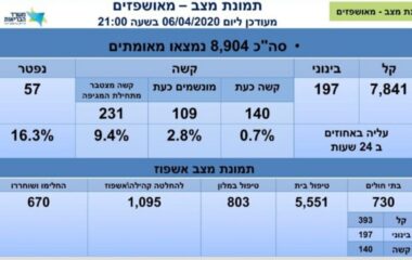 מספר הנדבקים בקורונה עומד על 8904, מתוכם 140 במצב קשה