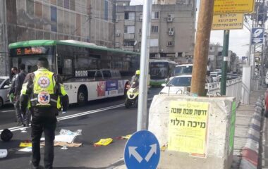 נתניה: פצוע בינוני וחמישה קל בתאונה בין רכב לאופנוע והולכי רגל