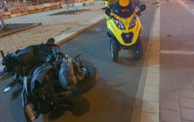 רוכב אופנוע בן 50 נפצע אנוש וצעיר בן 19 קל בתאונה בין רכב לאופנוע בפתח תקווה