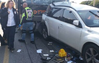 נהג רכב כבן 40 נפצע בינוני בתאונה עם אוטובוס בסמוך למחלף רעננה