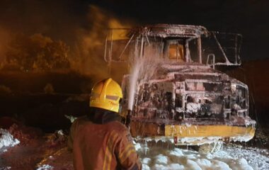לוחמי האש הוזעקו לשריפת קוצים וגילו שמדובר במשאית בוערת – אין נפגעים