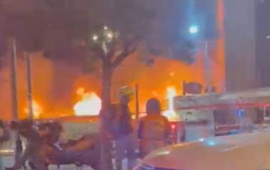 תיעוד מתל אביב: פיצוץ עז נשמע במהלך שריפה באחד המוסכים – אין נפגעים