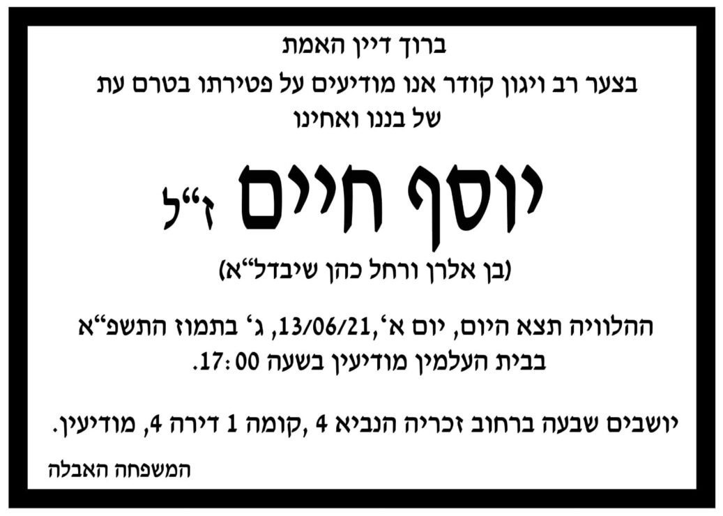 ההרוג בתאונה: יוסף חיים כהן ממודיעין.