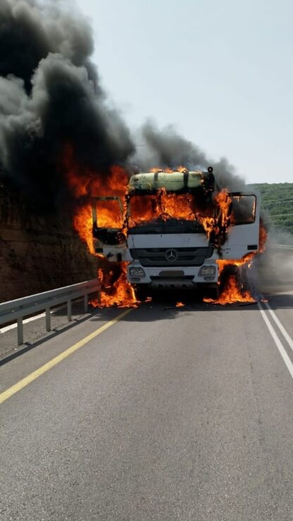 שלושה צוותים וסיוע ממחוז יו"ש בפיקוד להב שמואל פנסו פועלים לכיבוי שריפת משאית בעליות לקציר.המשאית לא מובילה דבר.