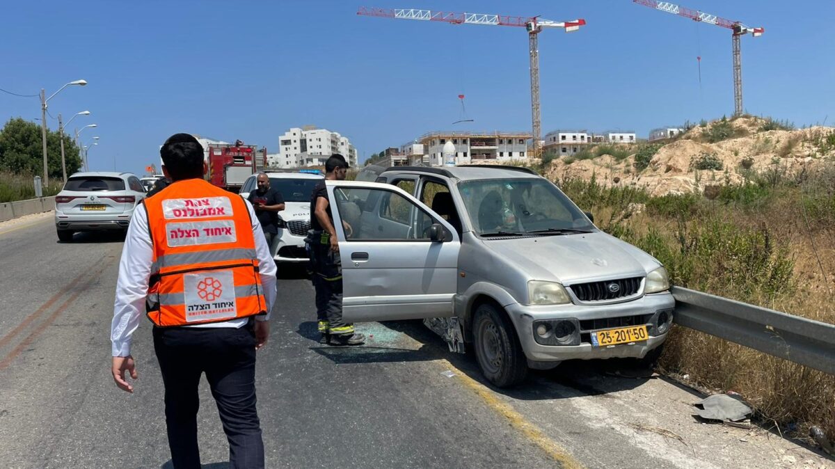 צוותי רפואה העניקו סיוע ראשוני לפצוע קשה כתוצאה מכוויות בתאונה עצמית בכביש 611 סמוך לחריש.