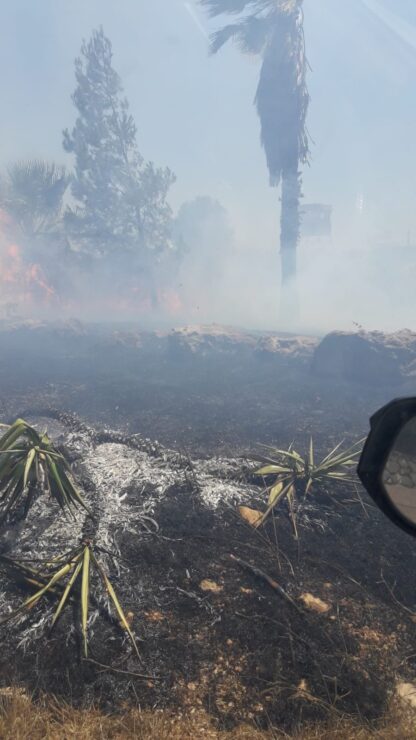 "היום בשעה 14:15 התקבל דיווח על שריפה גדולה ביישוב מגדלים שמתפשטת במהירות עקב רוחות חזקות וטופוגרפיה בעיתית. למקום הוקפצו צוותים של לוחמי אש מתחנה אזורית שומרון ובקעת הירדן. בהגיענו למקום זיהיתי שמדובר בשריפה עם 3 חזיתות, כאשר חזית אחת חדרה ליישוב. לוחמי האש ביצעו פעולות כיבוי מהירות ובמקביל צוותים נפרשו להגנה על הישוב. בדיקת נסיבות האירוע נחקרות על ידי חוקר שריפות."