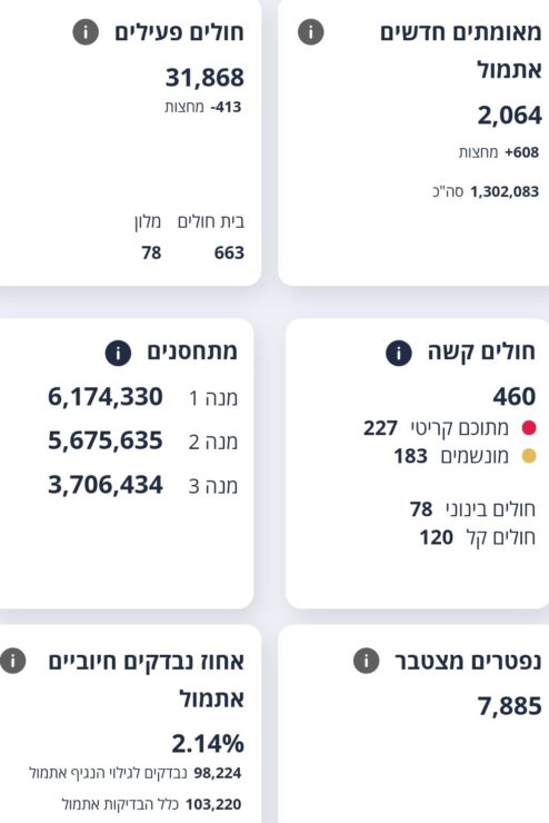 משרד הבריאות מעדכן על 2,064 מאומתים חדשים אתמול (7.10), מתוך נבדקים לגילוי הנגיף.
