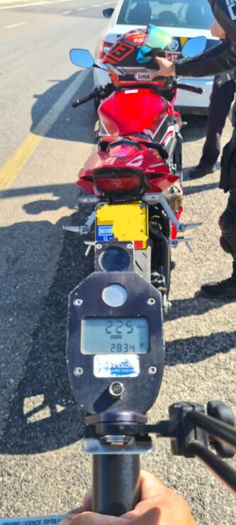 במסגרת פעילות אכיפה בכביש 1 סמוך למצפה יריחו, נמדד במכמונת מהירות אופנוע שנהגו נסע במהירות של 225 קמ"ש, בקטע כביש בו המהירות המותרת הינה 90 קמ"ש.