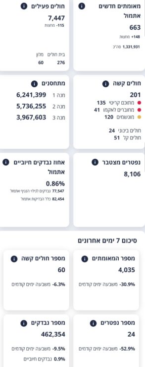 201 חולים שמצבם מוגדר קשה.