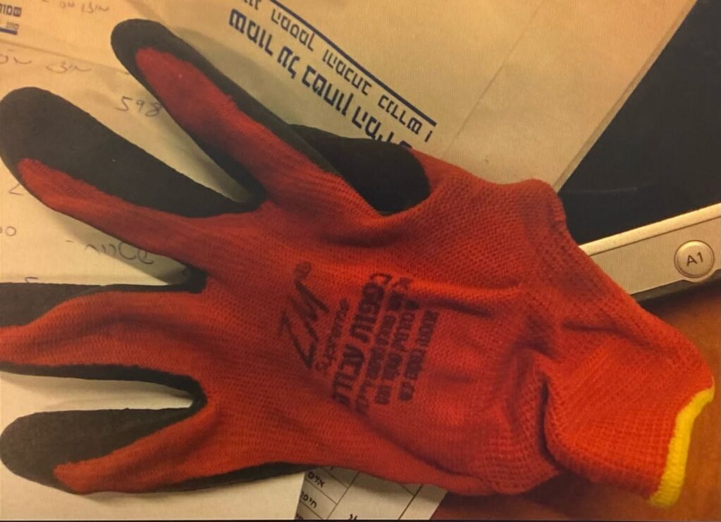 תמונות של כפפות שאותרו בזירה והחזרת הרכוש לבעליו. קרדיט צילום: דוברות המשטרה.