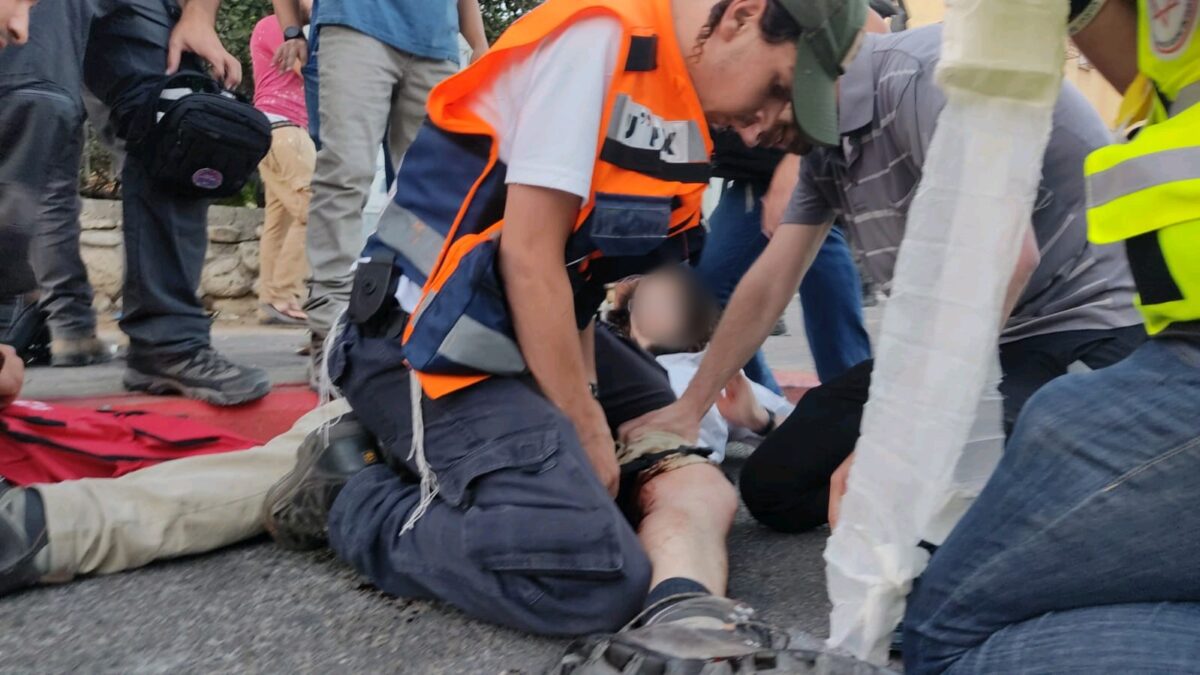 הטיפול הראשוני בפצוע. בפיגוע הירי בלוד. קרדיט חובה : אלעזר ריגר.