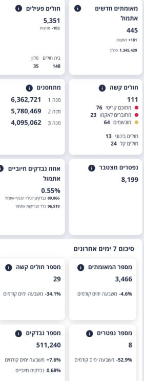 משרד הבריאות מעדכן על 445 מאומתים חדשים אתמול (3.12), מתוך 89,360 נבדקים לגילוי הנגיף.