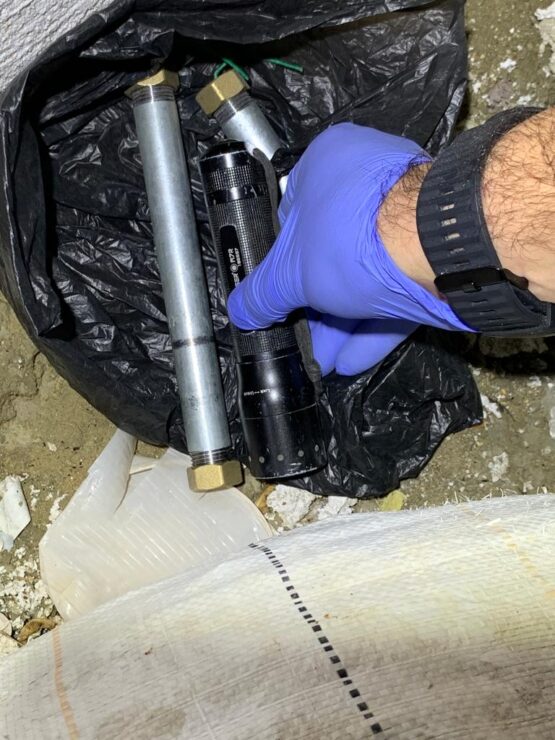 במהלך החיפוש אותרו ונתפסו 2 מטעני צינור שהושמדו עי חבלני המשטרה.