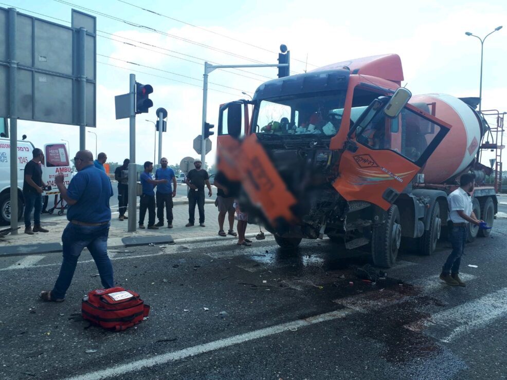 2 פצועים בתאונה עם מעורבות מערבל בטון ומשאית סמיטריילר אירעה בסמוך לצומת אפק.