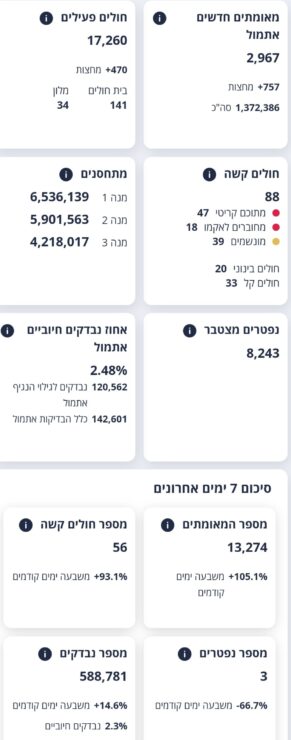 88 חולים שמצבם מוגדר קשה.