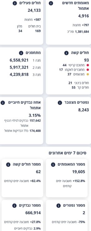משרד הבריאות מעדכן על 4,916 מאומתים חדשים אתמול (30.12), מתוך 157,642 נבדקים לגילוי הנגיף.