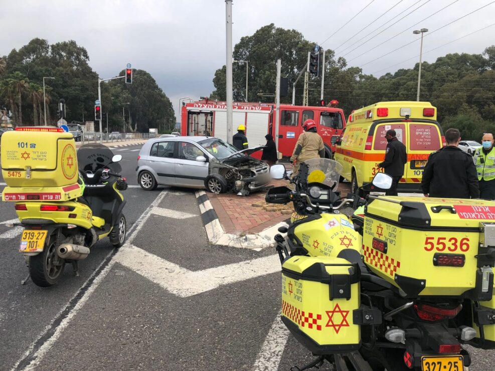 בשעה 11:54 התקבל דיווח במוקד 101 של מד"א במרחב שרון על רכב שהתנגש בעמוד בכביש 4 סמוך לצומת אור עקיבא. חובשים ופראמדיקים של מד"א העניקו טיפול רפואי ופינו לבית החולים הלל יפה אישה כבת 30 במצב בינוני עם חבלות בגפיים.