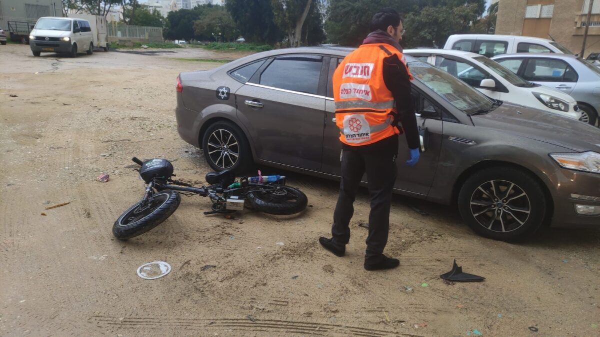 בשעה 14:37 התקבל דיווח על תאונת דרכים בין רוכב אופניים חשמליים לרכב פרטי ברחוב נתן אלבז אשדוד. חובשים ופראמדיקים של מד"א ואיחוד הצלה העניקו טיפול רפואי ופינו לבית החולים אסותא צעיר בן 18 במצב בינוני עם חבלה רב מערכתית.
