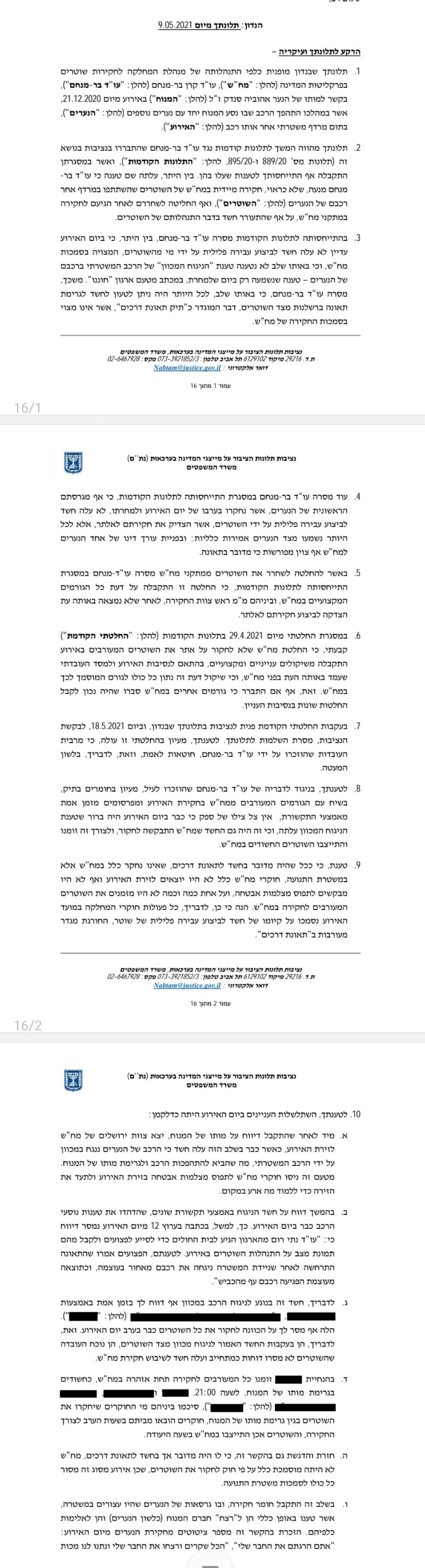 מדובר במסמך פנימי שנשלח בתוך מח"ש בעקבות תלונה על התנהלות ראש מח"ש עו"ד קרן בר מנחם בחקירת מותו של אהוביה ז"ל.