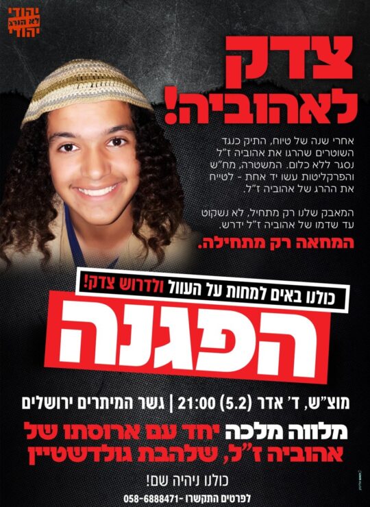 הפגנת מלווה מלכה: כ-200 מפגינים הגיעו לגשר המיתרים בירושלים יחד עם ארוסתו של אהוביה סנדק ז"ל והוריו – שדורשים: "צדק לאהוביה!"