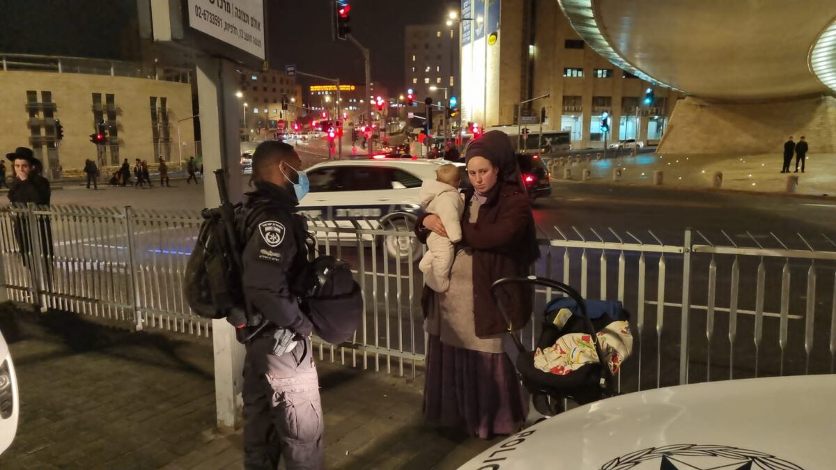 אישה עם תינוק עוכבה לזמן קצר במהלך ההפגנה.