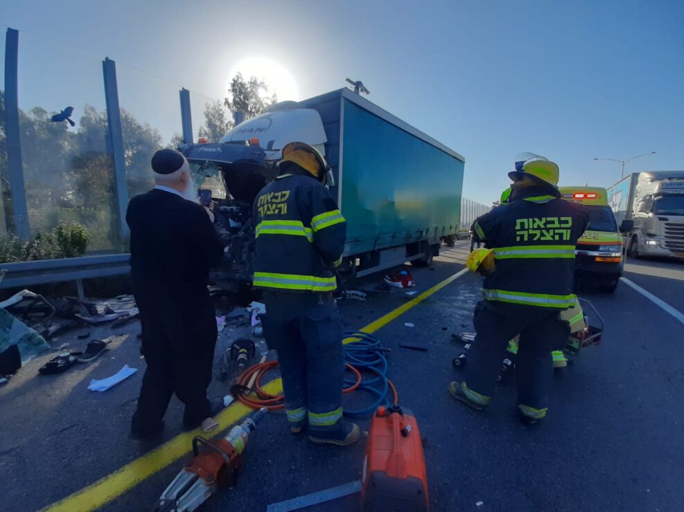 צוותי רפואה העניקו סיוע ראשוני לנהג משאית בן 22 שנפצע קשה בתאונה שאירעה בכביש 6 בסמוך למחלף באקה.
