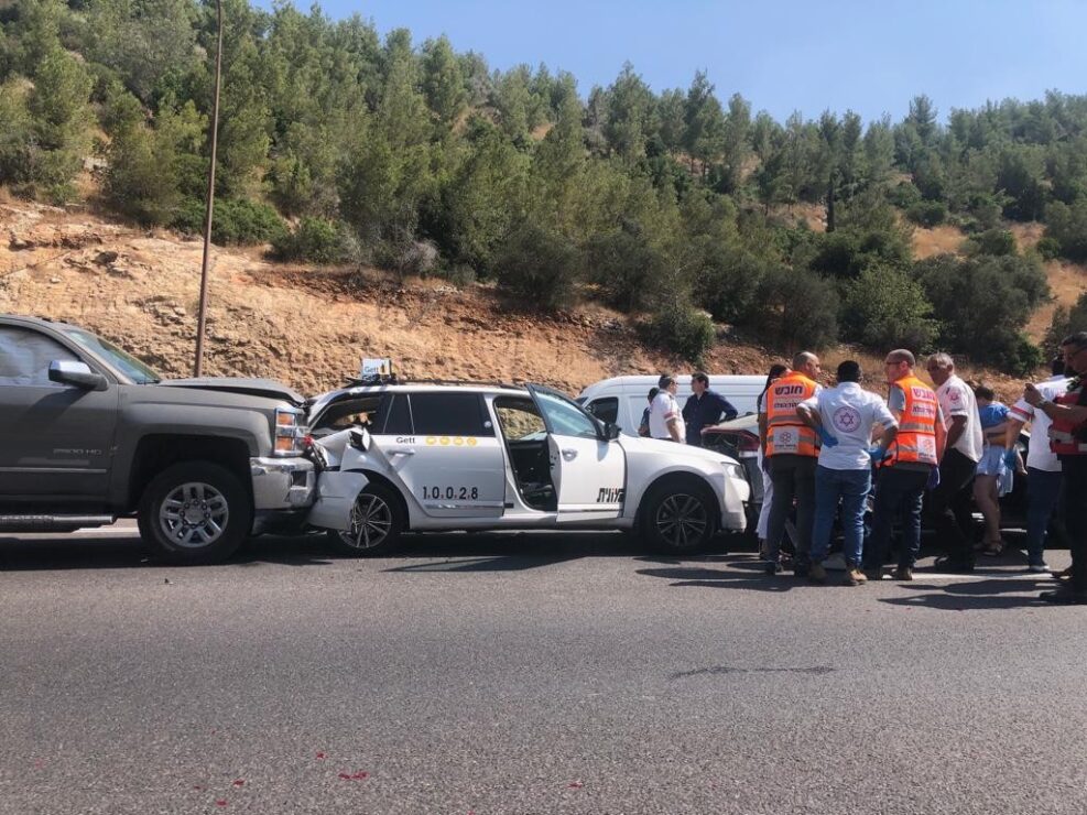 לפני זמן קצר התקבל דיווח על תאונה בין מספר כלי רכב בכביש 1 בסמוך למחלף שער הגיא.
