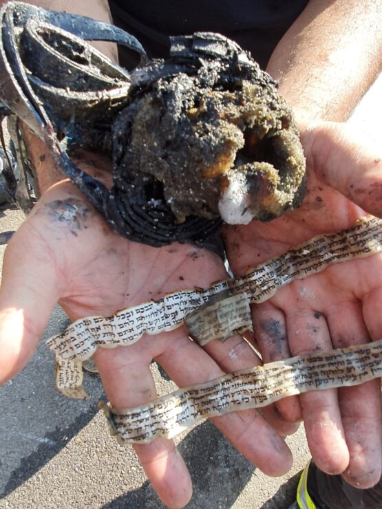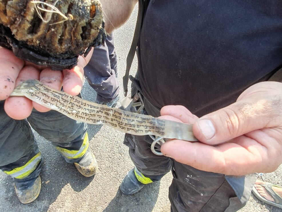 בסריקות במקום נמצאו תפילין שנפגעו כתוצאה מהשריפה, אך בדרך נס הקלפים שבתוכם נשארו שלמים וכמעט לא נפגעו.