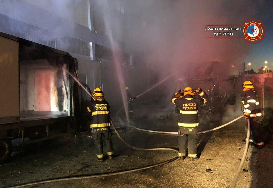 סמוך לשעה 04:30 לפנות בוקר הוזעקו לוחמי האש לרחוב יקותיאל בהרב במפרץ חיפה בעקבות דיווח על משאיות העולות באש.